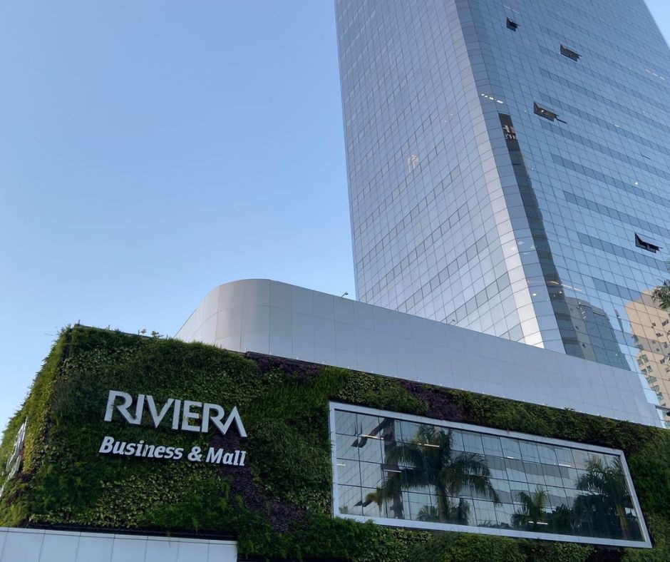 Escritório finamente mobiliado localizado no Riviera Business & Mall com mesa de reunião para atendimento e reunião privativa para seus negócios.
