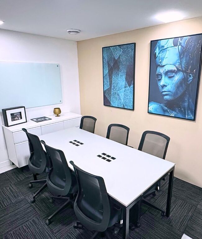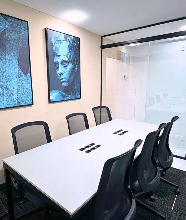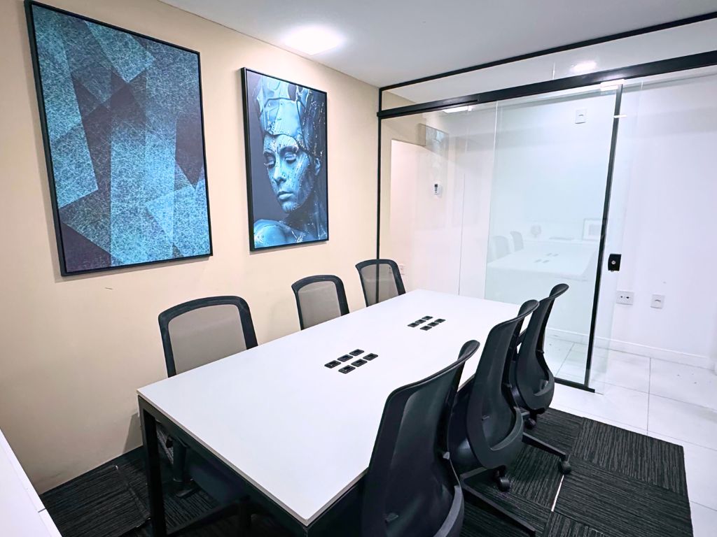 Escritório mobiliado e compacto para acomodar a sua reunião.